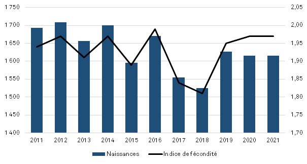 Nombre de naissances et indice de fécondité