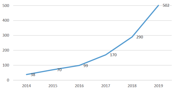 Au 31 mars 2019, 502 véhicules électriques1 étaient immatriculés en Abitibi-Témiscamingue. Si la proportion de véhicules électriques par rapport à l’ensemble du parc de véhicules légers demeure sous la barre du 1 % ici comme dans l’ensemble du Québec, elle connaît une hausse continue et importante depuis 2014.